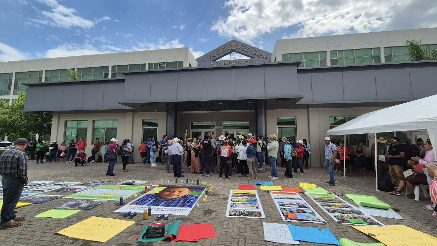 “¿Qué exige el Aguán? ¡Justicia para Juan!” Con pancartas, megáfonos y consignas exigen justicia en el caso de Juan López las comunidades presentes en cada audiencia suspendida. Un estudio de CESPAD identificó 58 conflictos socioambientales en Honduras.