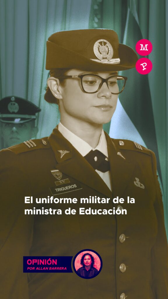 El 14 de agosto de 2025, el presidente de El Salvador Nayib Bukele nombró a la capitana de las Fuerzas Armadas, Karla Trigueros, como nueva ministra de Educación. Esta ingresa a su despacho y se sienta en su escritorio con el uniforme y botas de soldado, como que fuera a la guerra. No se le critica porque sea mujer o médica, como han tratado de sugerir los analistas del gobierno, sino por ser una milica que evoca a las oscuras dictaduras militares que El Salvador padeció en las décadas de 1930-1980.