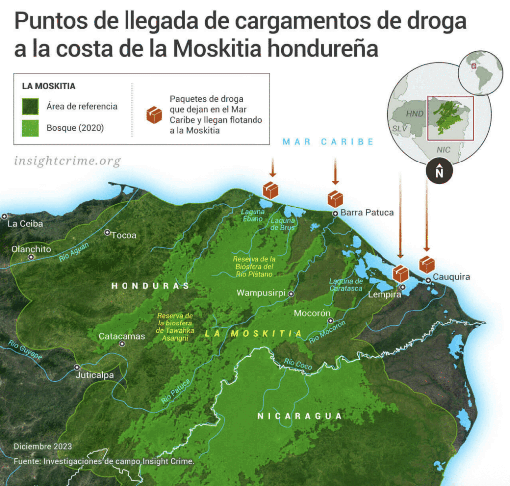 Landa explica que la presencia del narcotráfico data de los años 80, debido a que La Moskitia es una zona de difícil acceso, ya que solamente se puede llegar en avioneta o lancha. “Eso la convierte en una zona que los narcotraficantes vieron como idónea para descargar la droga”, dijo.